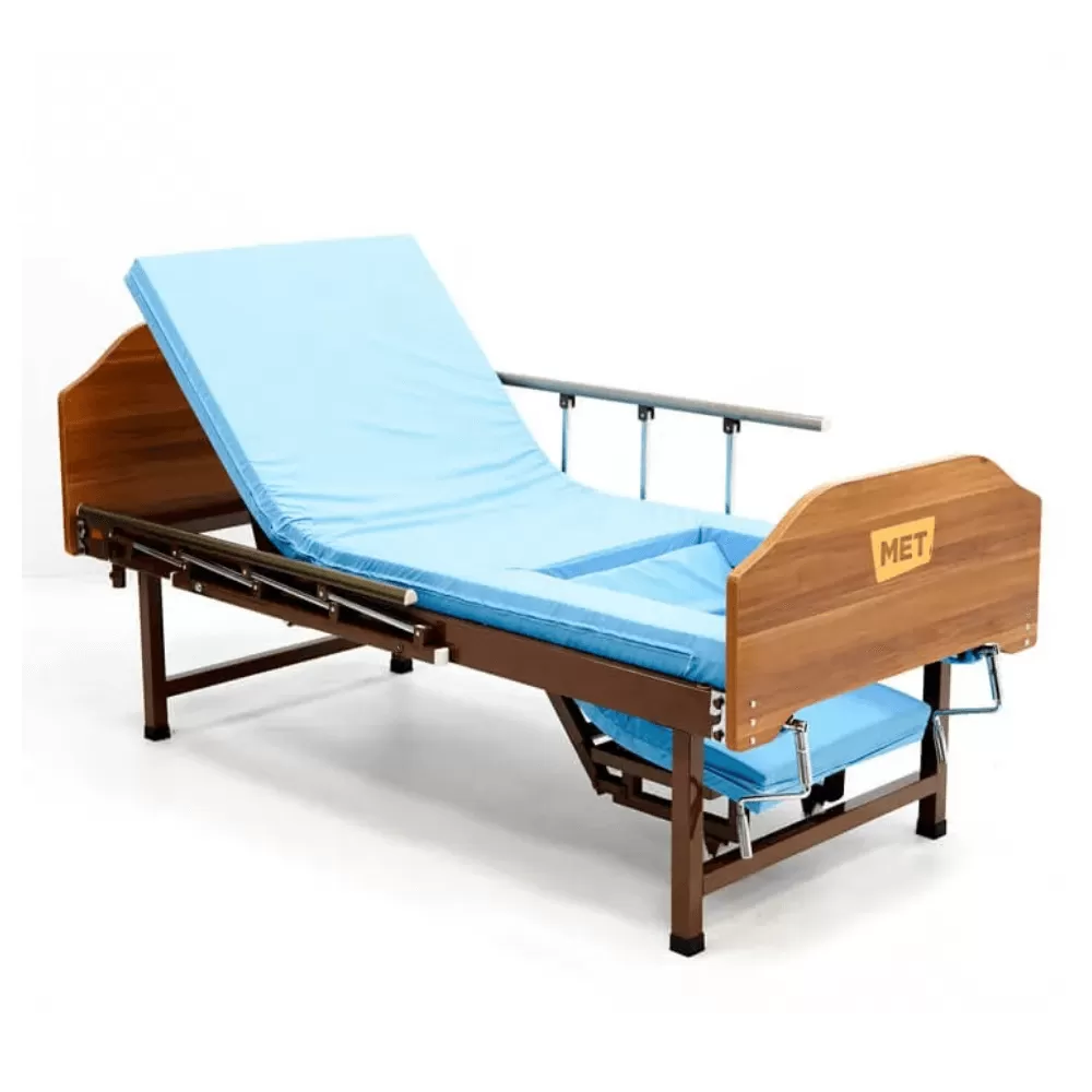 Опускающаяся ножная секция позволяет кровати MET STAUT занимать терапевтическое положение "кардиокресло", показанное при лечении большинства кардио-заболеваний, а полноценное сидячее положение, достижимое с помощью такой конструкции ложа делает бодрствование больного максимально удобным и полноценным.