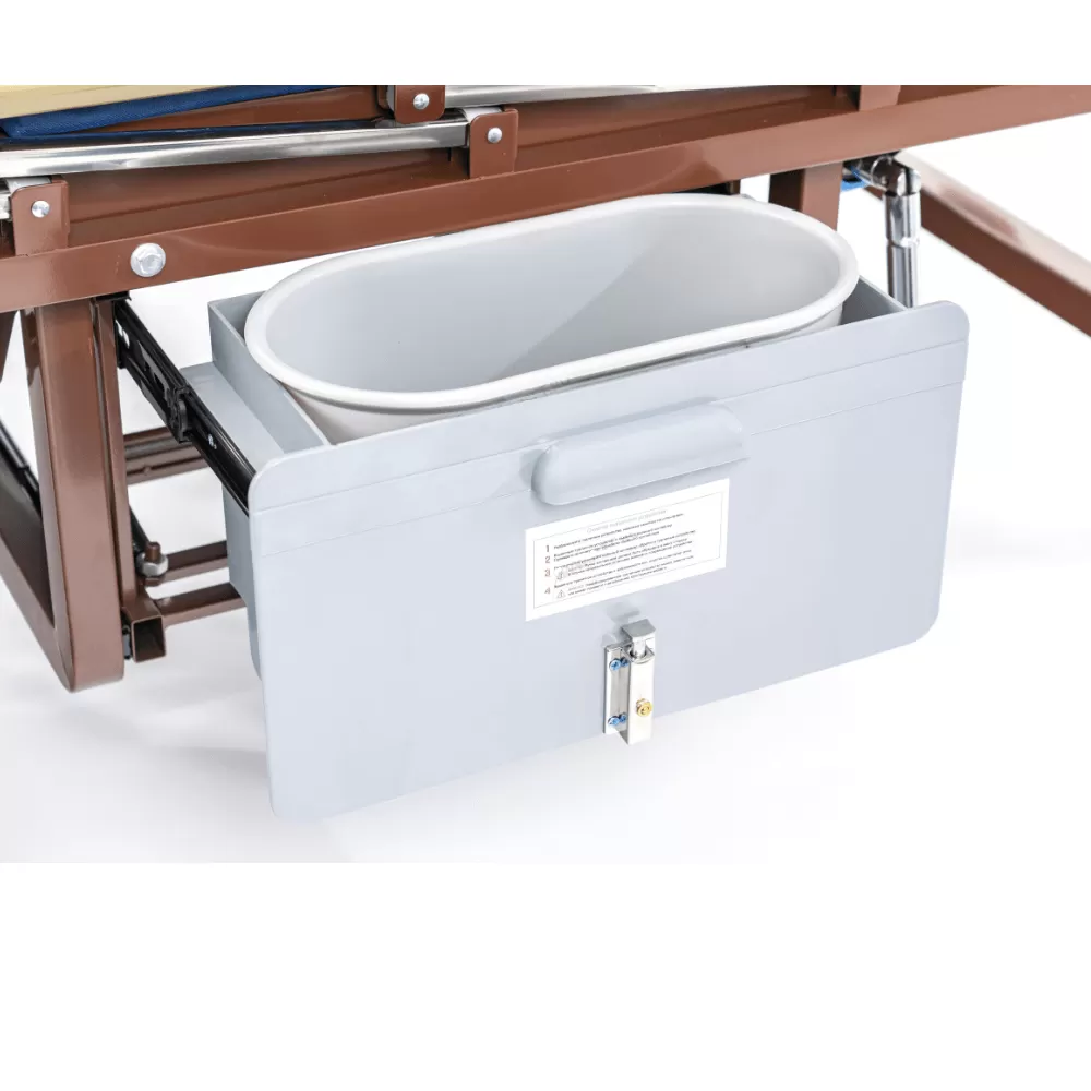 Опускающаяся ножная секция позволяет кровати MET TARYS занимать терапевтическое положение "кардиокресло", показанное при лечении большинства кардио-заболеваний, а полноценное сидячее положение, достижимое с помощью такой конструкции ложа делает бодрствование больного максимально удобным и полноценным.