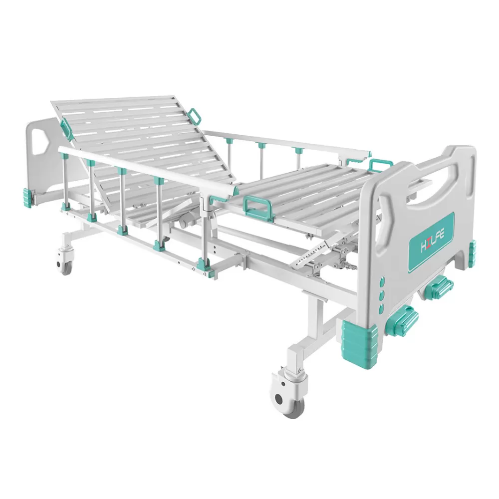 Функциональная медицинская кровать с механической регулировкой секций предназначены для ухода, диагностики, лечения и наблюдения за пациентом в стационарных медицинских учреждениях, и в домашних условиях- четырехсекционное металлическое реечное ложе с винтовой регулировкой спинной и тазобедренной секцией;