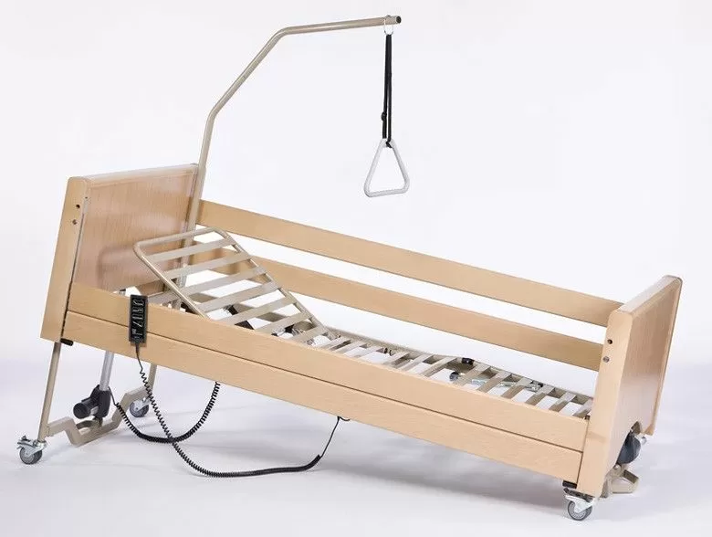 Медицинская кровать Luna X – Iow представляет собой изделие,  каркас и рама которого, сделаны из стальной трубы, покрытой эмалью методом  порошкового напыления. Такое покрытие предотвращает образование коррозии, при  попадании влаги на металлические части кровати. Боковые и торцевые ограждения  выполнены из натурального бука, а матрацное основание состоит из стальных  перекладин.