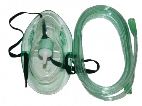 Удлиненная форма кислородной маски «под подбородок». Контур маски, повторяющий изгиб лицевой части черепа. Алюминиевый носовой фиксатор. Эластичный фиксирующий ремешок. Переходник на маске для кислородной трубки. Кислородная трубка, длиной 2м, с несминаемым внутренним просветом "звездчатого" сечения. Не содержит латекса.