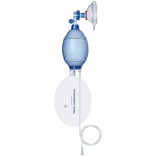 Ручной легочный реанимационный мешок предназначен для ручной вентилляции легких. Нескользящее покрытие поверхности и быстрая возвращаемость мешка обеспечивают эффективность и удобство в работе. Двойной (15 и 22 мм) универсальный вращающийся коннектор для подсоединения к наркозной маске или интубационной трубке. В комплект входит прозрачная наркозная маска с подкачивающейся манжетой, трубка-коннектор к источнику кислорода и мешок. Комплект упакован в платиковый бокс. Не подлежит автоклавированию.