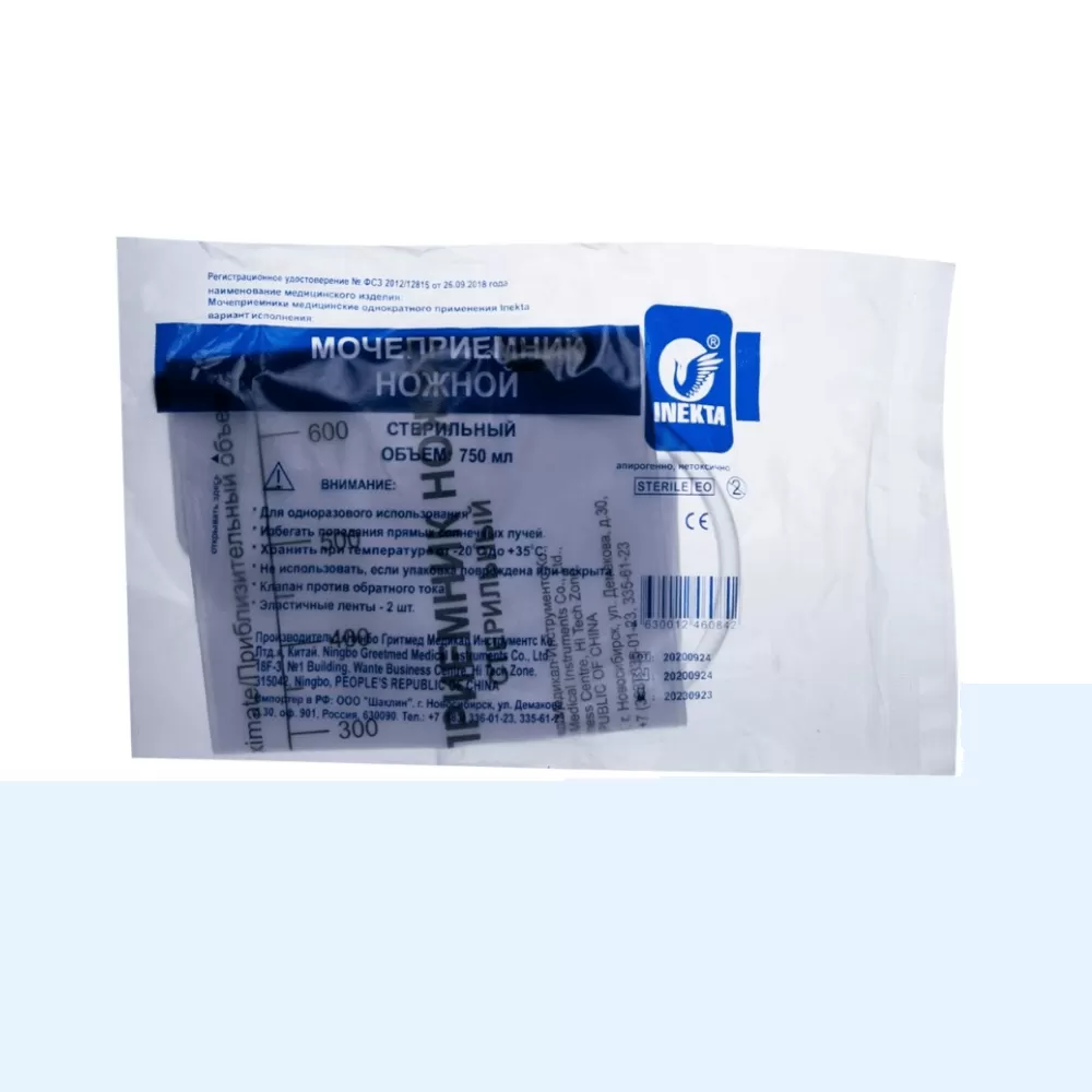 Мочеприемник медицинский 750 мл - 1 шт в стерильной полиэтиленовой упаковке.Производитель