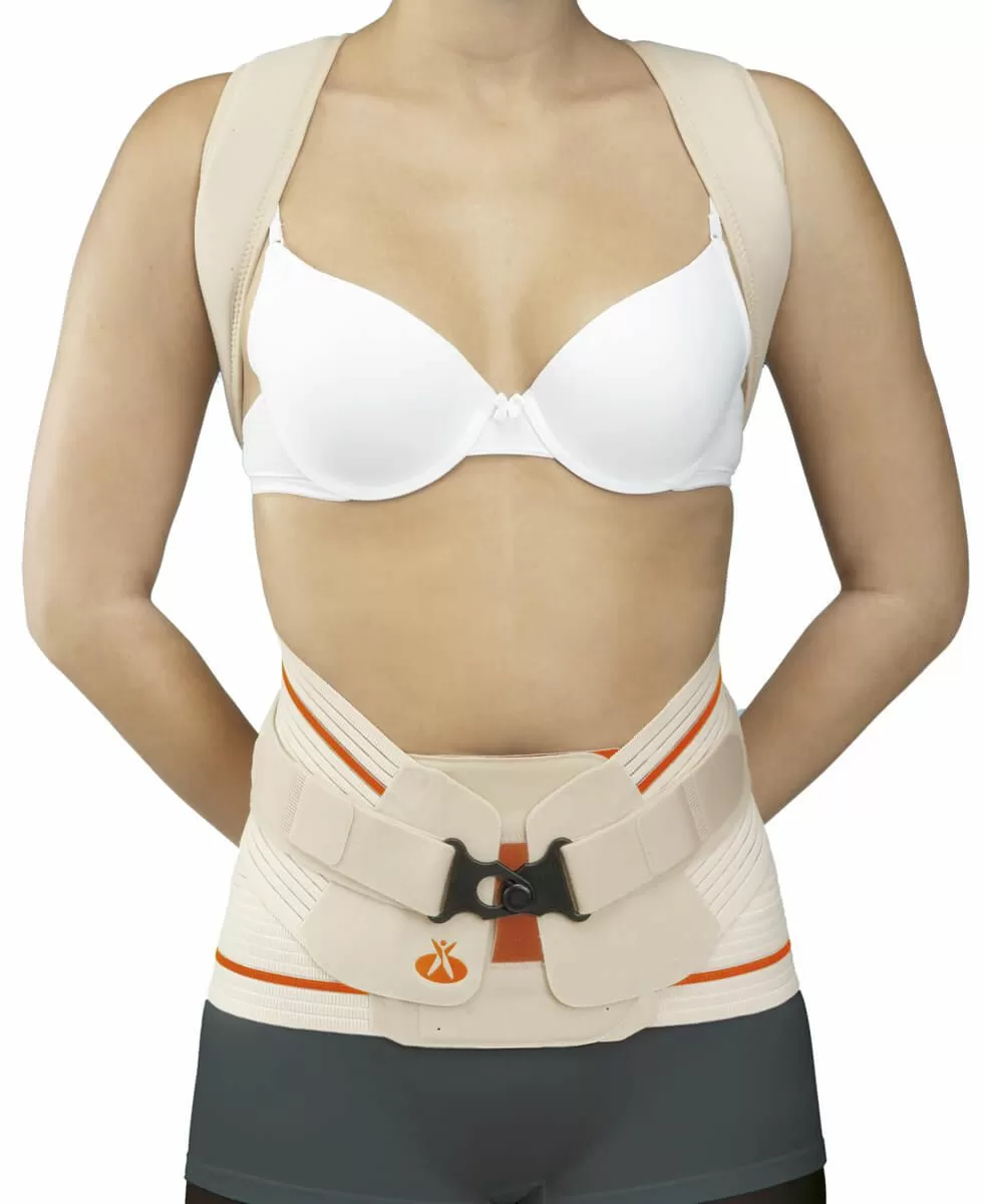 - Обеспечивает фиксацию грудного отдела позвоночника с дополнительной разгрузкой на грудо-поясничном уровне.