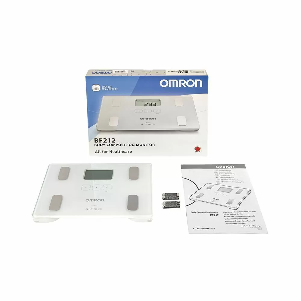 Монитор состава тела, 4 марганцевых элемента питания типа AAА (R03), руководство по эксплуатации, гарантийный талон.