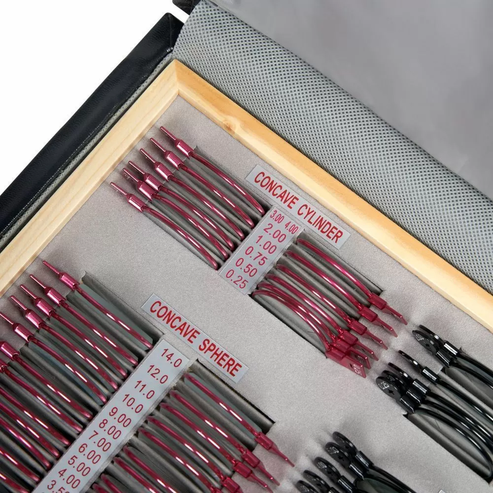 - Для проверки косоглазия и скрытого косоглазия, а также для тренировки структур глаз в наборе представлены призматические линзы. В набор входят парные очковые призмы от 0.5 пр дптр до 3.00 пр дптр