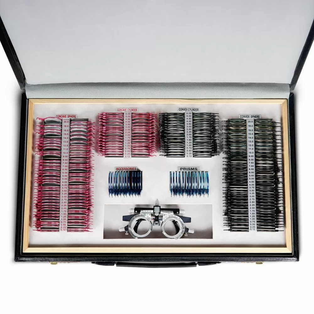 - Набор включает специальные сферические линзы для обследования зрения. В комплект входят: парные отрицательные (-) (вогнутые) от 0.12 дптр до 20.00 дптр и парные положительные (+) (выпуклые) линзы от 0.12 дптр до 20.00 дптр. Выпуклые линзы используются для исследования гиперметропии (слабой клинической рефракции), вогнутые - для исследования миопии (сильной клинической рефракции) и старческой дальнозоркости.