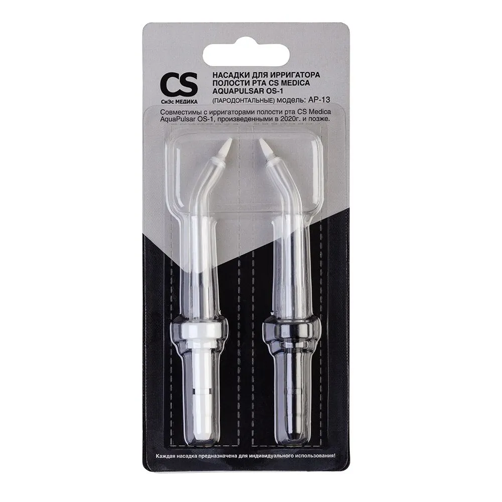Насадки для ирригатора CS Medica Aquapulsar OS-1  AP-13  (пародонтальные) (2шт) - насадки с мягким наконечником, предназначены для деликатной гигиены пародонтальных карманов при воспаленных состояниях десен и повышенной их чувствительности.