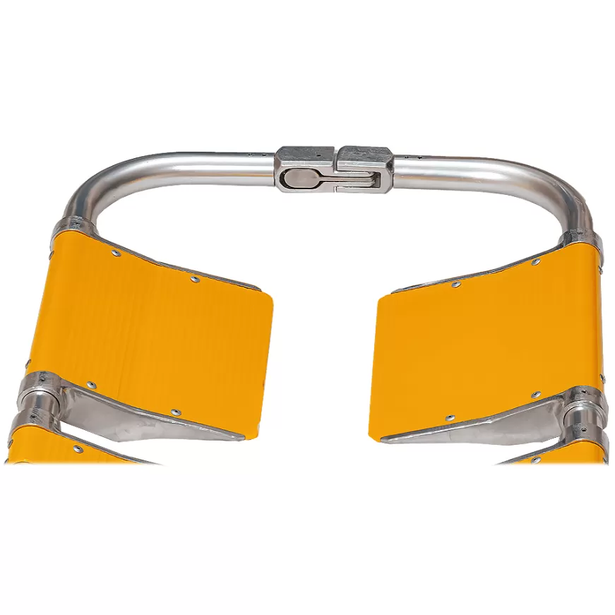 - Разборные петли с двух концов носилок дают возможность разделить носилки на две продольные части. Это позволяет быстро и легко поместить пациента на носилки, подложив их под спину без перемещения пациента.