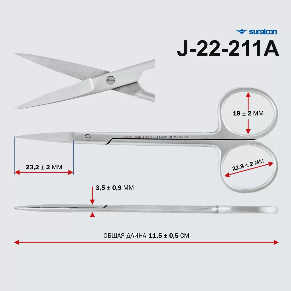 Ножницы прямые остроконечные предназначены для разрезания тканей во время глазных операций.- Изготовлены из коррозионностойкой хирургической стали