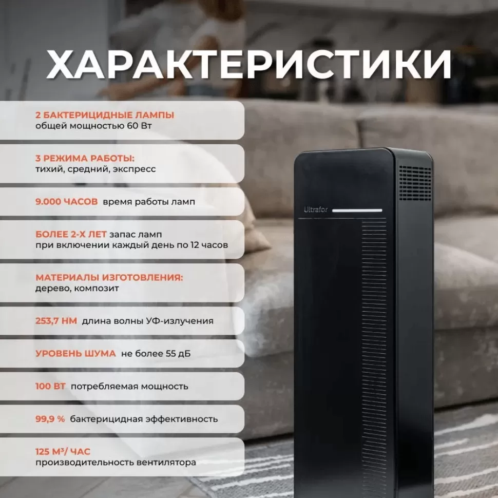 Ultrafor очищает воздух от вирусов, бактерий, патогенов и запахов. Хорошо впишется в любой интерьер.