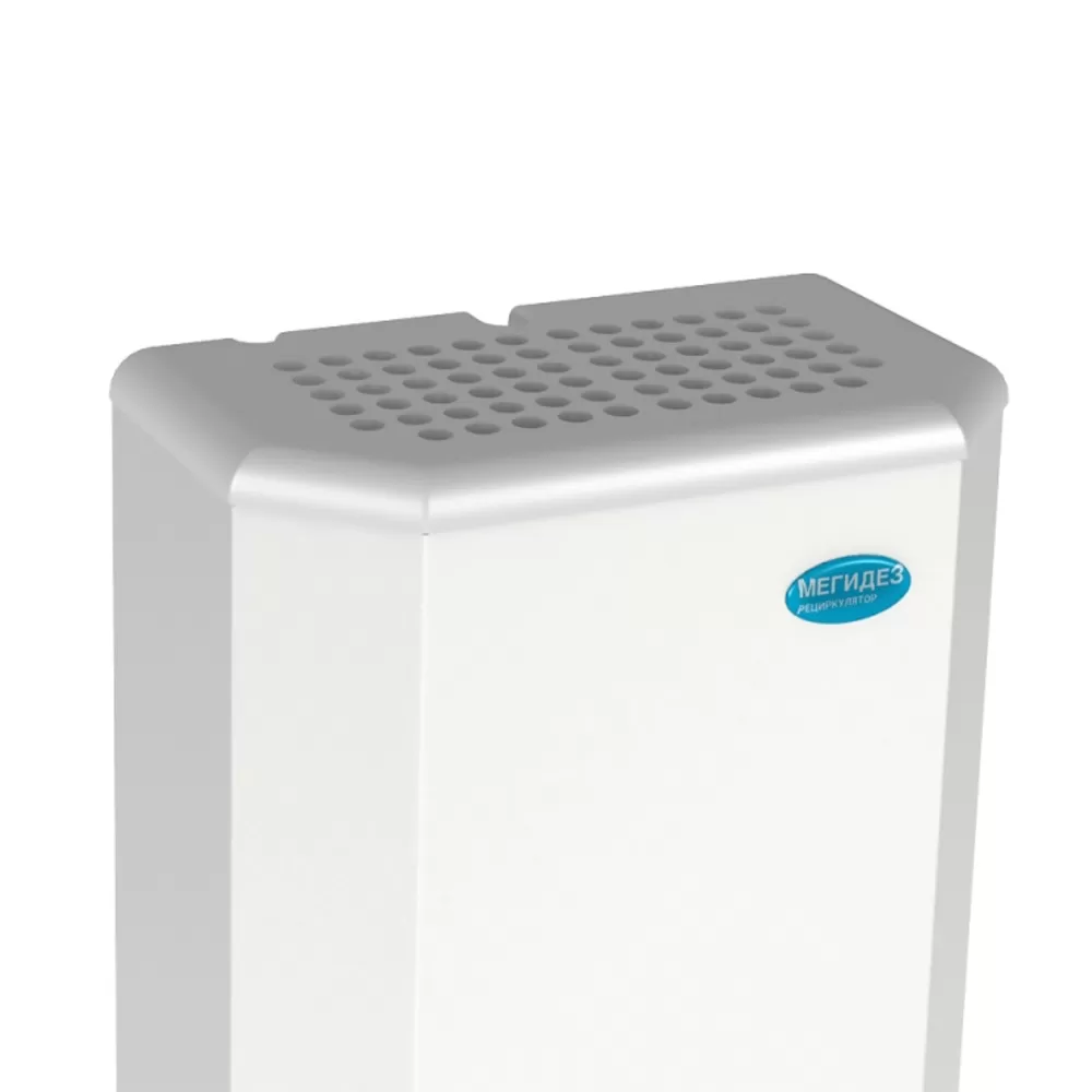 - Безопасен при использовании в присутствии людей. Обеззараживание воздушного потока происходит в процессе его принудительной циркуляции через металлический корпус при помощи вентилятора. Внутри корпуса размещена лампа 15 Вт - безозоновая бактерицидная низкого давления МЕГИДЕЗ. Ультрафиолетовое излучение лампы уничтожает болезнетворные микроорганизмы, и чистый обеззараженный воздух после циркуляции по лабиринту воздуховода возвращается в помещение. Для свободной циркуляции воздуха рециркуляторы рекомендуется размещать на стене или на передвижной платформе.