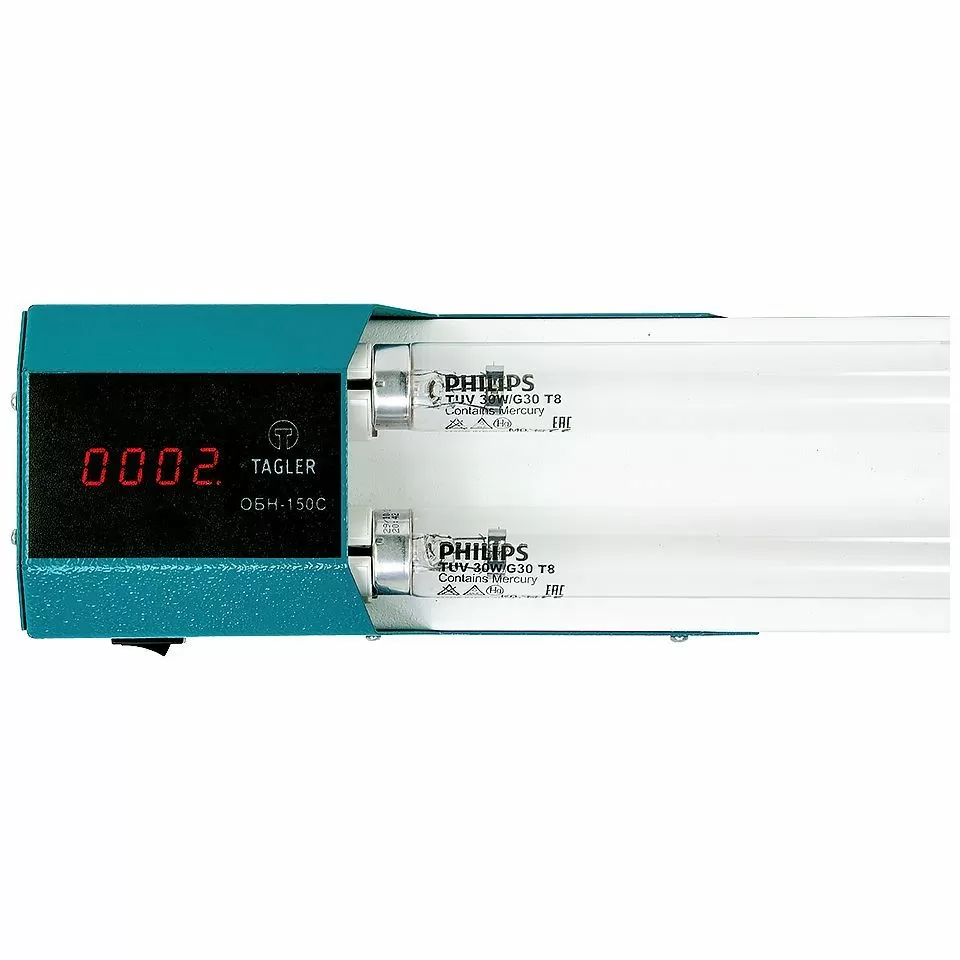 Реакция живой микробной клетки на ультрафиолетовое излучение не одинакова для различных длин волн. В TAGLER ОБН-150С используются две ртутных разрядных лампы низкого давления мощностью 30 Вт каждая. Они дают коротковолновое излучение с максимумом при длине волны 253,7 нм, излучение с такой длиной волны наиболее эффективно разрушает микроорганизмы.