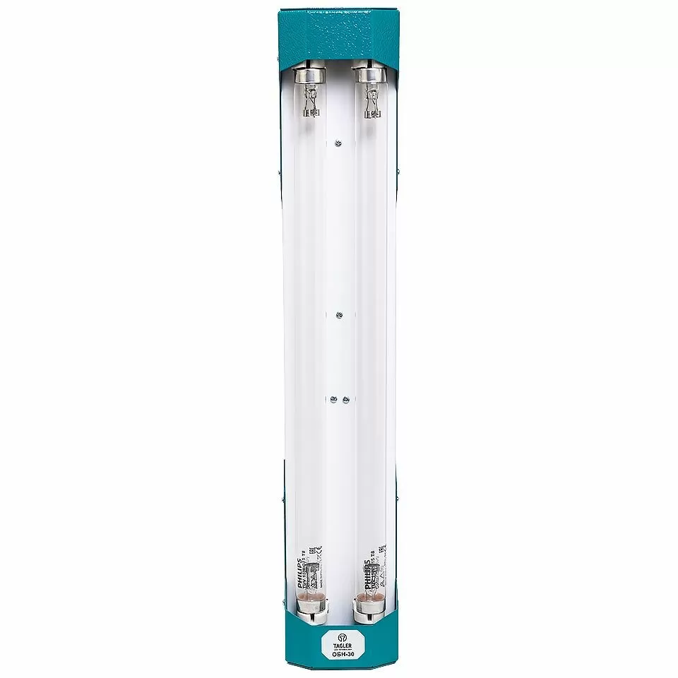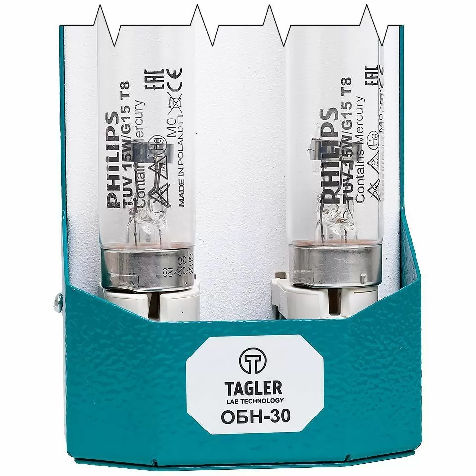 Реакция живой микробной клетки на ультрафиолетовое излучение не одинакова для различных длин волн. В TAGLER ОБН-30 используются две ртутных разрядных лампы низкого давления мощностью 15 Вт каждая. Они дают коротковолновое излучение с максимумом при длине волны 253,7 нм, излучение с такой длиной волны наиболее эффективно разрушает микроорганизмы.
