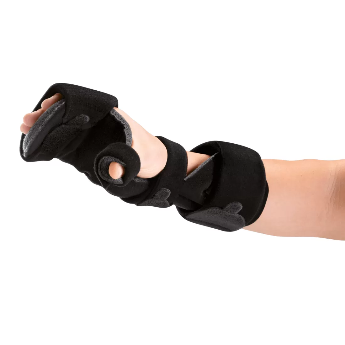 - Ортез изготовлен с использованием алюминиевого каркаса, что позволяет изменять угол ограничения подвижности лучезапястного сустава, кисти и пальцев.