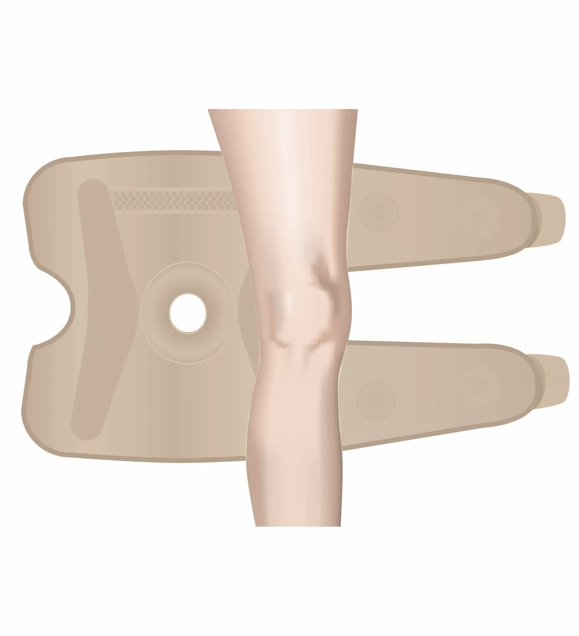 - Кольцо из двойного слоя пенополиуретана мягко фиксирует и стабилизирует коленную чашечку, не сдавливая ткани вокруг сустава, что особенно важно при нарастающем отеке