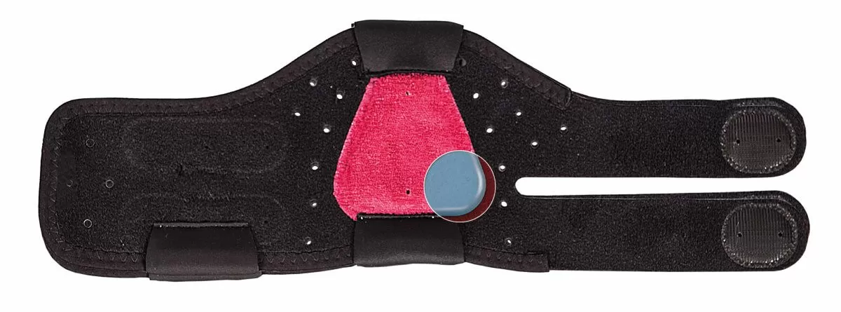 - БАНДАЖ, который представляет собой манжету на нижнюю часть голени с застежками micro velcro (бандаж надевается в области ноги — выше лодыжки).