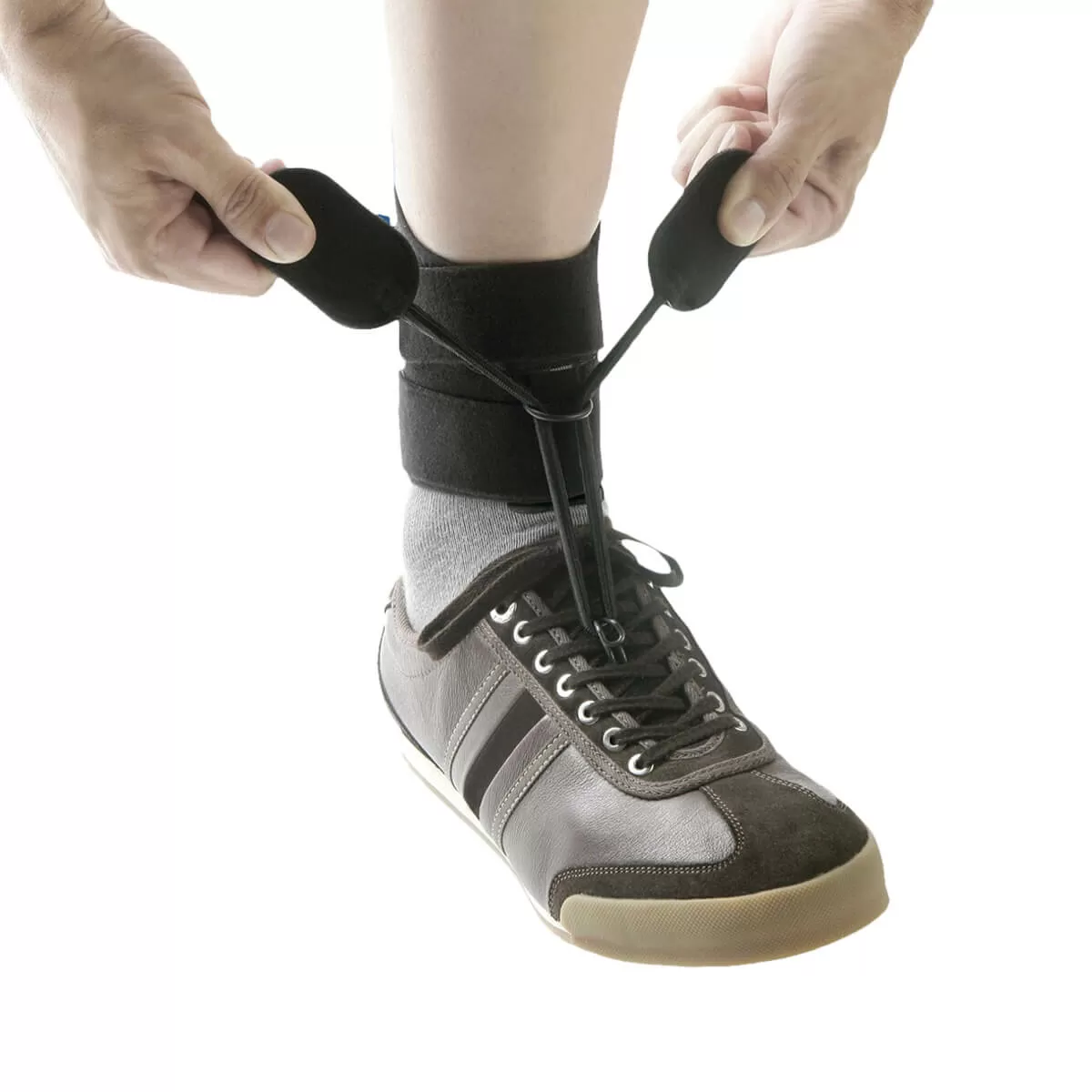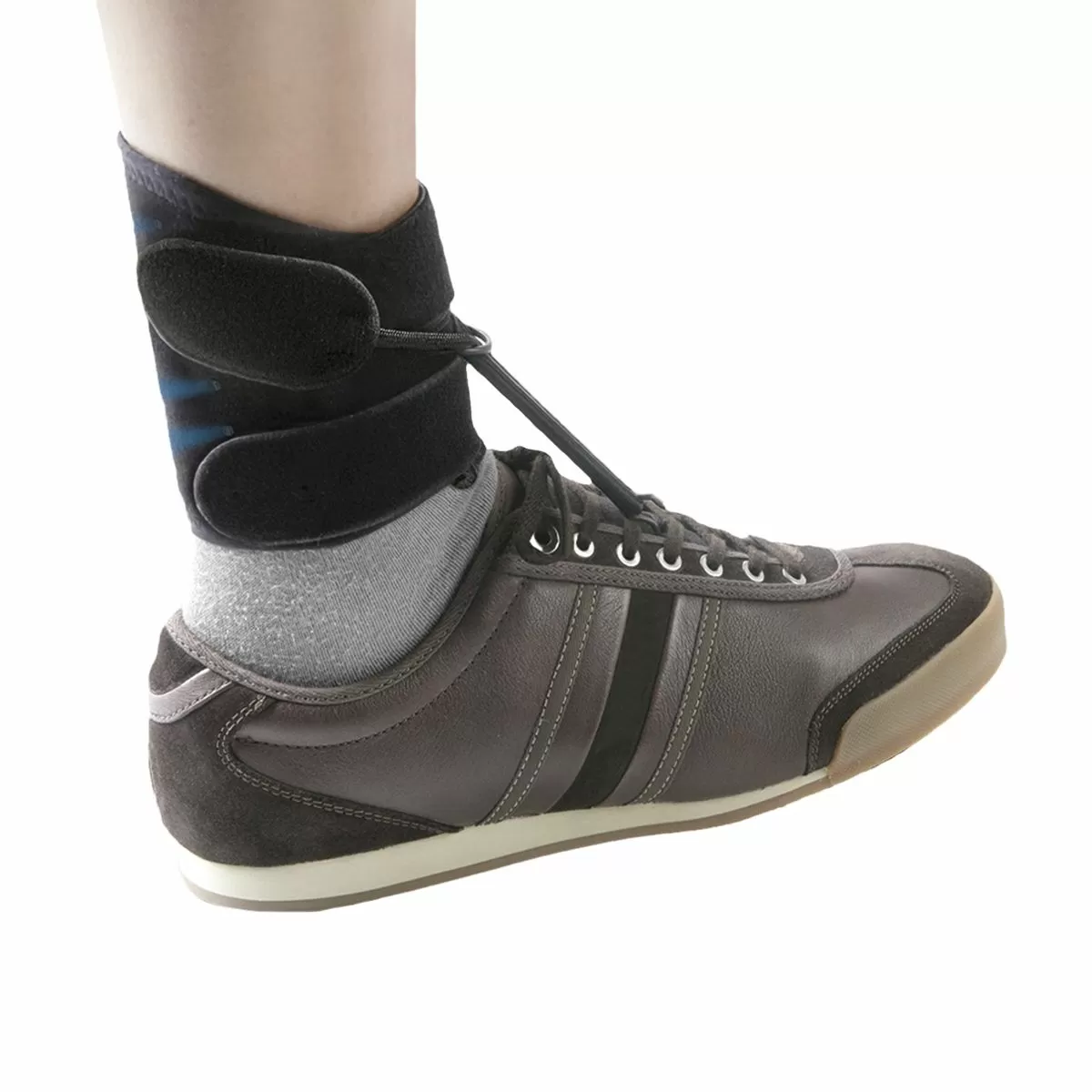 - Не требует покупки или подбора обуви под ортез, может использоваться с любой обувью на шнуровке