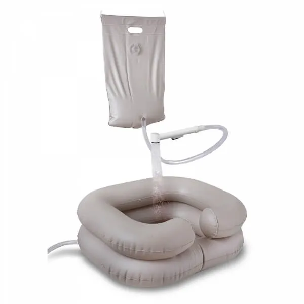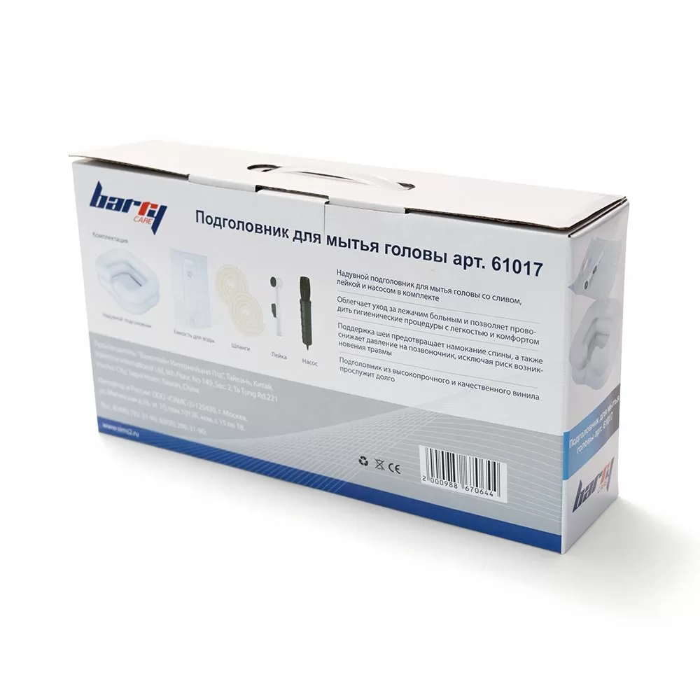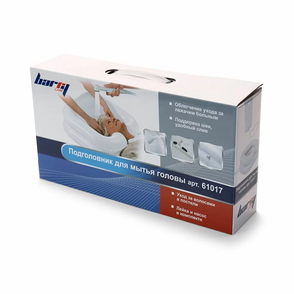 Надувной подголовник для мытья головы с лейкой и насосом 61017.