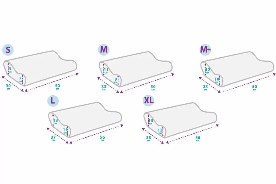 - наличие нескольких типоразмеров позволяет правильно подобрать подушку для людей разной комплекции