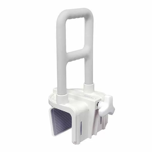 Поручень для ванны 10400 создаст безопасные условия для принятия водных процедур пожилым людям и людям с ограниченными возможностями. Изделие крепится на бортик ванны при помощи двух платин с рельефной резиной. Зафиксировать по ширине поручень можно винтовым кронштейном. Все детали изделия – высококачественный ударопрочный гигиенический пластик. Винт- крепление выполнен из нержавеющей стали.