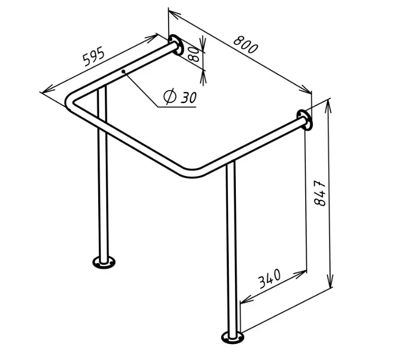 Максимальный размер раковины, мм - 630х535 (с учетом гарантированного расстояния от раковины до поручня 30 мм)
