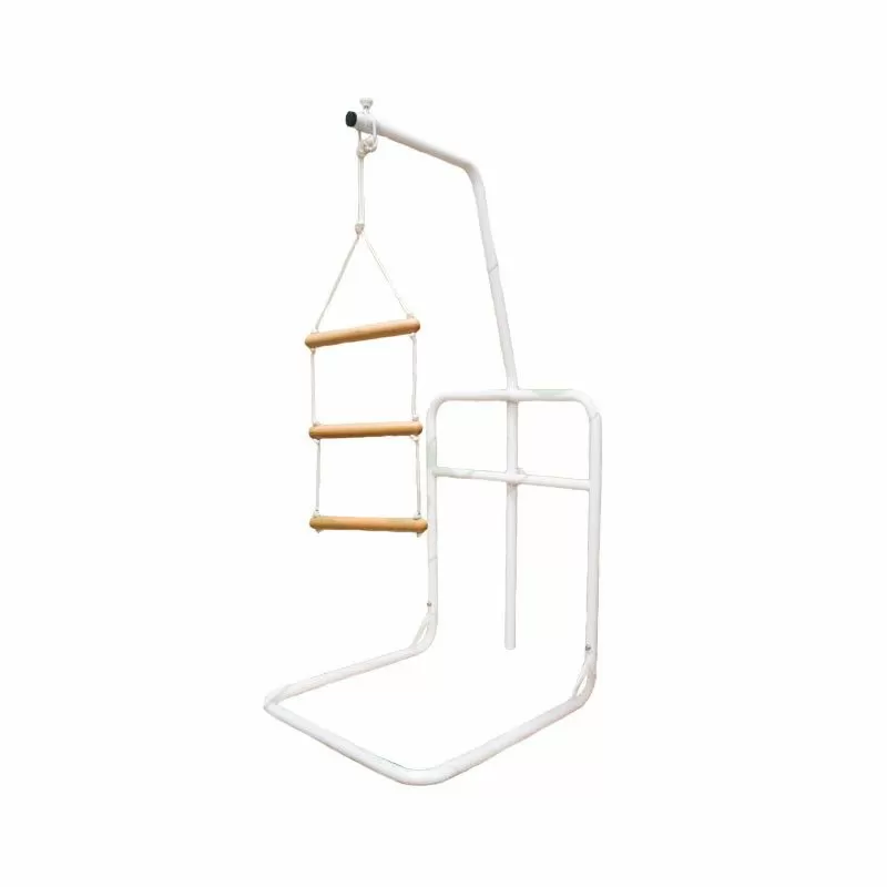 Опора в кровать металлическая универсальная (дуга напольная прикроватная) предназначена для облегчения самостоятельного перемещения и изменения положения пациента на кровати, а также обеспечивает опору при подъёме с кровати (применяется в качестве аналога рамы (дуги) Балканского).