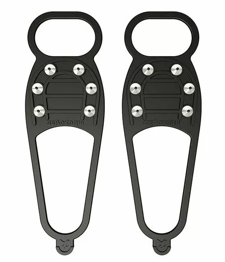 Диаметр рабочей части шипа обычных ледоходов 3,5 мм. И «острый» конец его на самом деле плоский. По известной формуле S = ПR2, площадь рабочего конца такого шипа составляет 9,62 мм. кв. и на твердом льду такие шипы, плоские и широкие на концах, иногда могут скользить. Однако их нельзя сделать меньше диаметром, иначе они сточатся за неделю. Но так как вольфрамовая вставка практически не стачивается, то в «стандарт 6х6 плюс» мы сделали ее диаметр ощутимо меньше – 2,35 мм. При этом и площадь ее сечения всего стала лишь 4,33 мм. кв. Кроме того, на конце вставка округлая и площадь непосредственно рабочей части твердотелого шипа стала еще меньше ~ 1,9 мм. кв. вместо 9,62 мм. кв. Именно поэтому под действием веса человека такие шипы в несколько раз лучше вгрызаются в лед и надежнее держат, предохраняя от падений. Кроме того, высота самого шипа стала чуть меньше (теперь не нужно делать «запас на износ»), так что ходить в таких ледоходах стало еще удобнее.