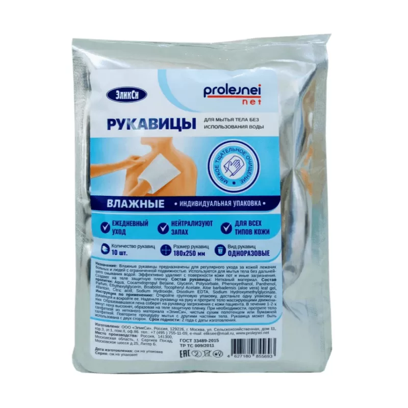 Специальные одноразовые мочалки для ухода за лежачими больными и людей с ограниченной подвижностью.Данные рукавицы не требуют смывания водой. Каждая рукавица находится в индивидуальной упаковке, содержит высококачественную пенку, которая нежно очищает кожу и обеспечивает ее мягкую защиту.Эффективно нейтрализуют любые запахи и удаляют с кожи пот и иные загрязнения.Специальные компоненты, такие как пантенол и алоэ, смягчают и увлажняют кожу, делая ее более здоровой и создавая на теле защитную пленку.