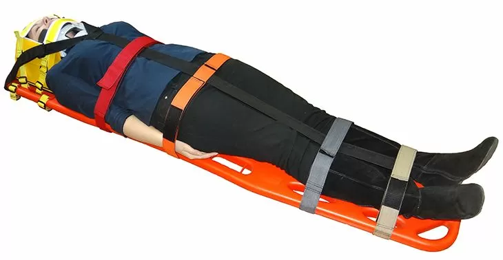Ременная система,   входящая в комплект щита, состоит из центрального ремня и прикреплённых   к нему 5-ти парных ремней. Крайние ремни пришиты к центральному ремню   статически, три ремня расположенных посередине могут перемещаться вдоль   центрального ремня для возможности фиксации пациентов любого   телосложения.