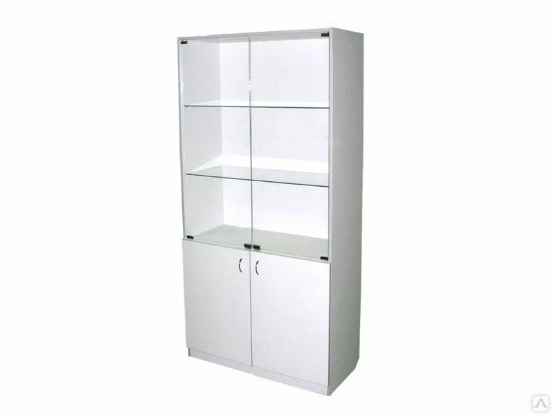 - верхнее с двумя стеклянными дверями и двумя стеклянными полками