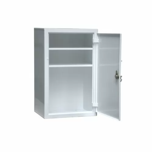 Шкаф одностворчатый, однодверный, изготовлен из листового проката. Корпус шкафа имеет отверстия в днище, закрытые фальшпанелью для крепления к полу. Дверь оборудована