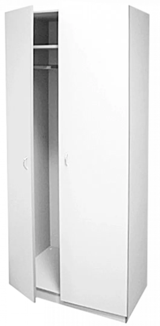 - Шкаф двустворчатый, имеет полку для головных уборов и перекладину для вешалок, полка устанавливается на конфирматах