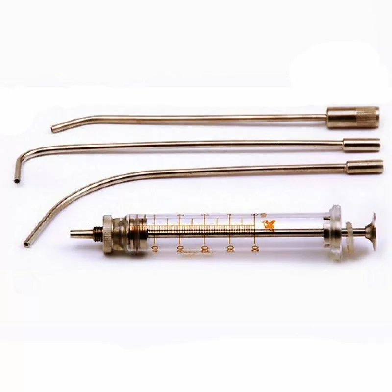 Шприц предназначен для внутригортанного вливания и промывания миндалин. Стеклянная колба позволяет многократно использовать инструмент. В наборе со шприцем идут сменные наконечники, изготовленные из качественной нержавеющей стали. Применяется инструмент в области оториноларингология.