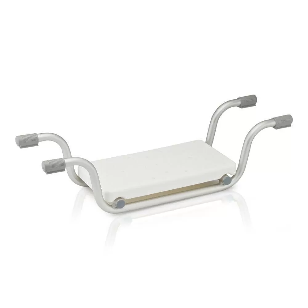 - Сиденье размещается на ванну путем закрепления рукояток за бортики.