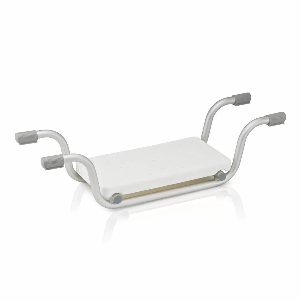 - Сиденье размещается на ванну путем закрепления рукояток за бортики. Убирать сиденье также легко.