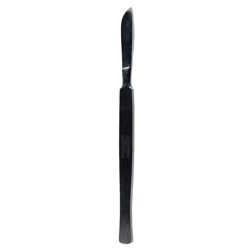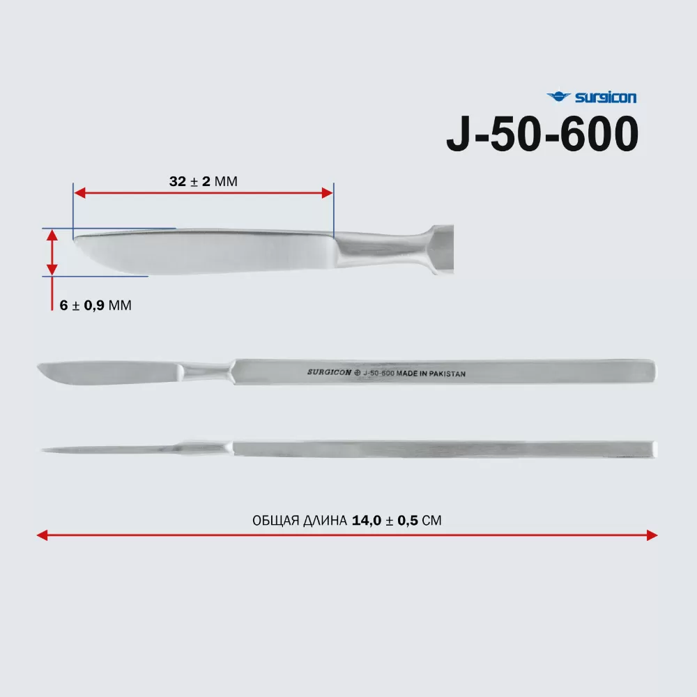 Однолезвийный медицинский инструмент, предназначенный для рассечения мягких тканей при офтальмологических операциях, с брюшистым лезвиеми цельнометаллической ручкой, рабочая часть которого при разделении тканей перемещается по линии разреза.