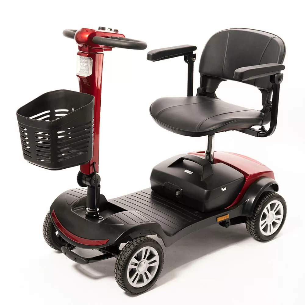 Оснащен удобным рулем, на котором располагается панель управления, и поворотным сиденьем с откидывающимися подлокотниками. Это позволяет сделать посадку на кресло скутера комфортной даже для пользователей, которые имеют проблемы с опорно-двигательным аппаратом.