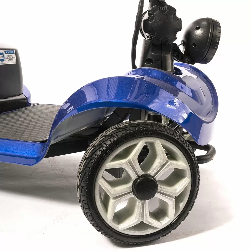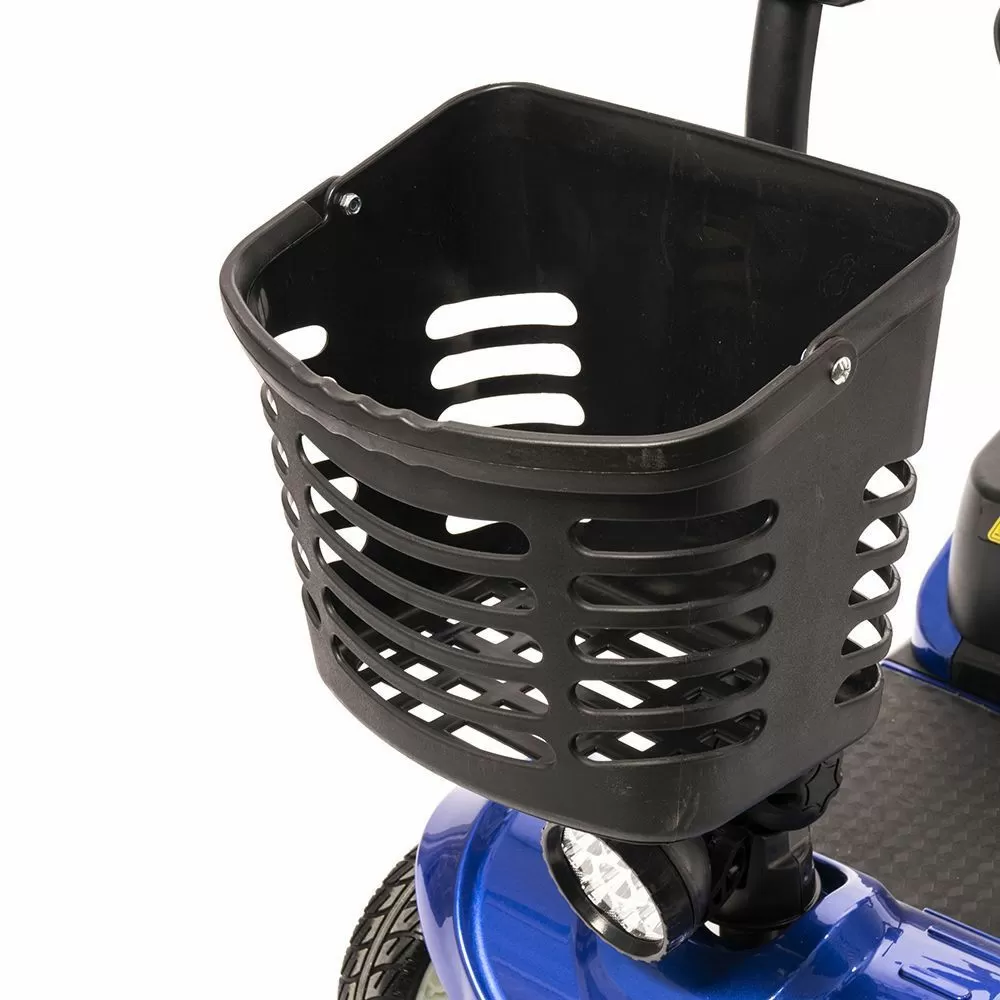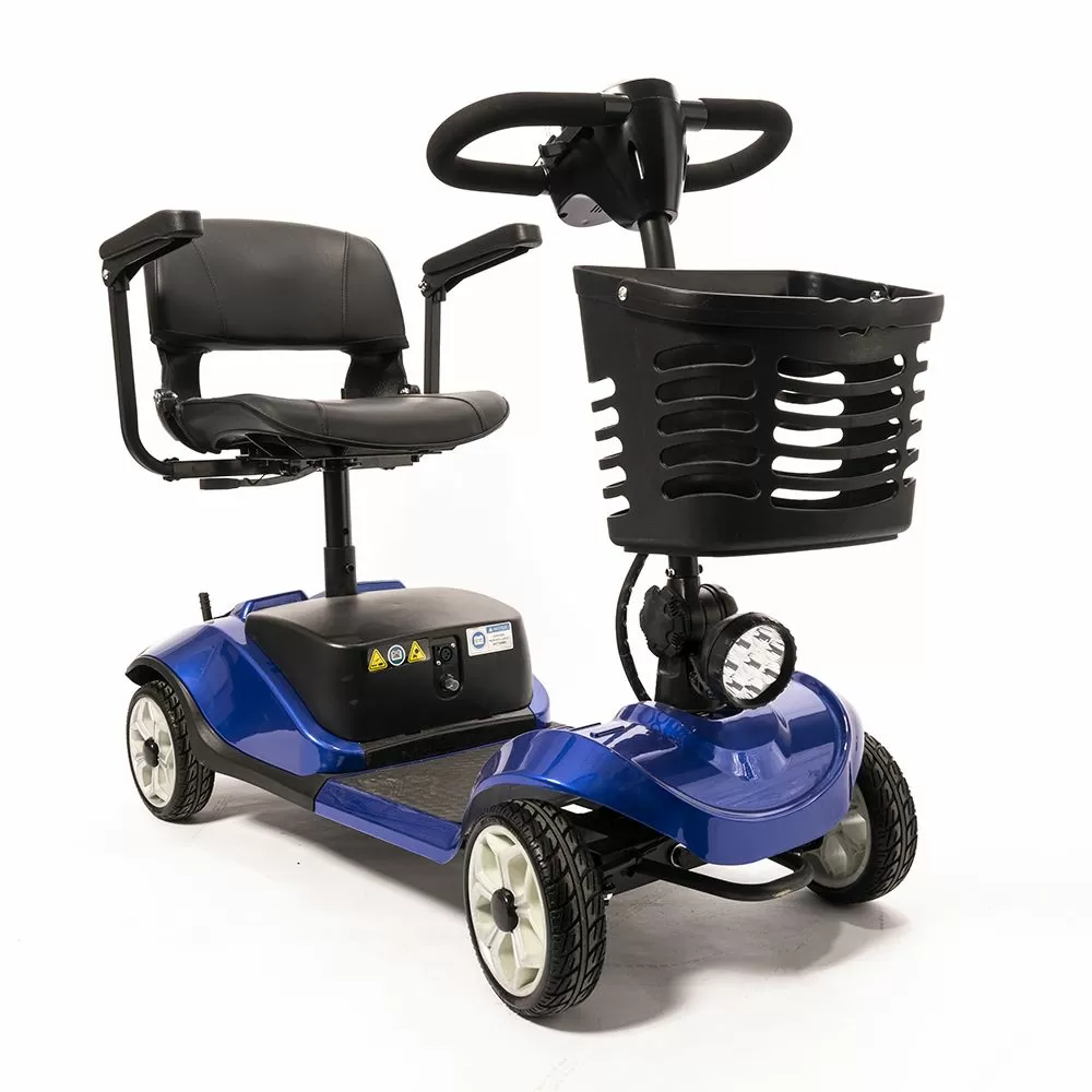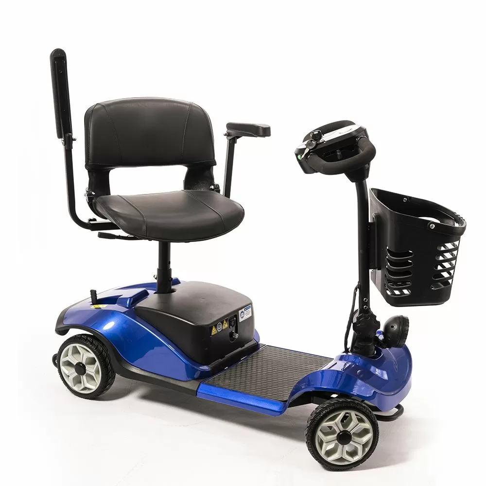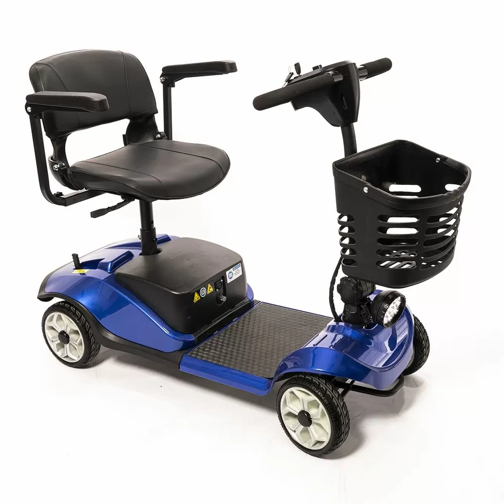 Оснащен удобным рулем, на котором располагается панель управления, и поворотным сиденьем с откидывающимися подлокотниками. Это позволяет сделать посадку на кресло скутера комфортной даже для пользователей, которые имеют проблемы с опорно-двигательным аппаратом.