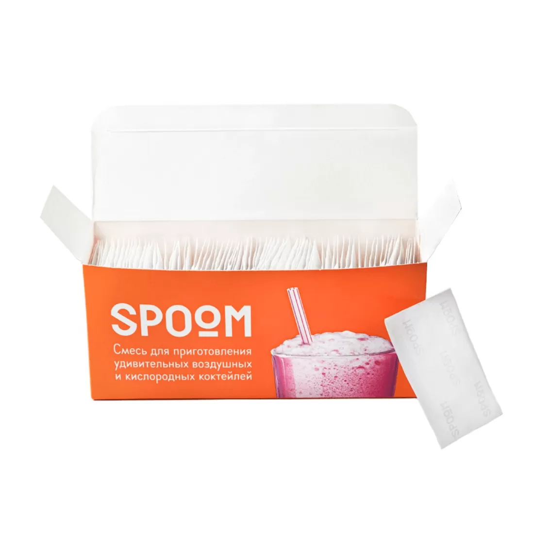 - Смесь для кислородных коктейлей Spoom уже готова к приготовлению полезного напитка – нужны только пузырьки O2 и жидкость;