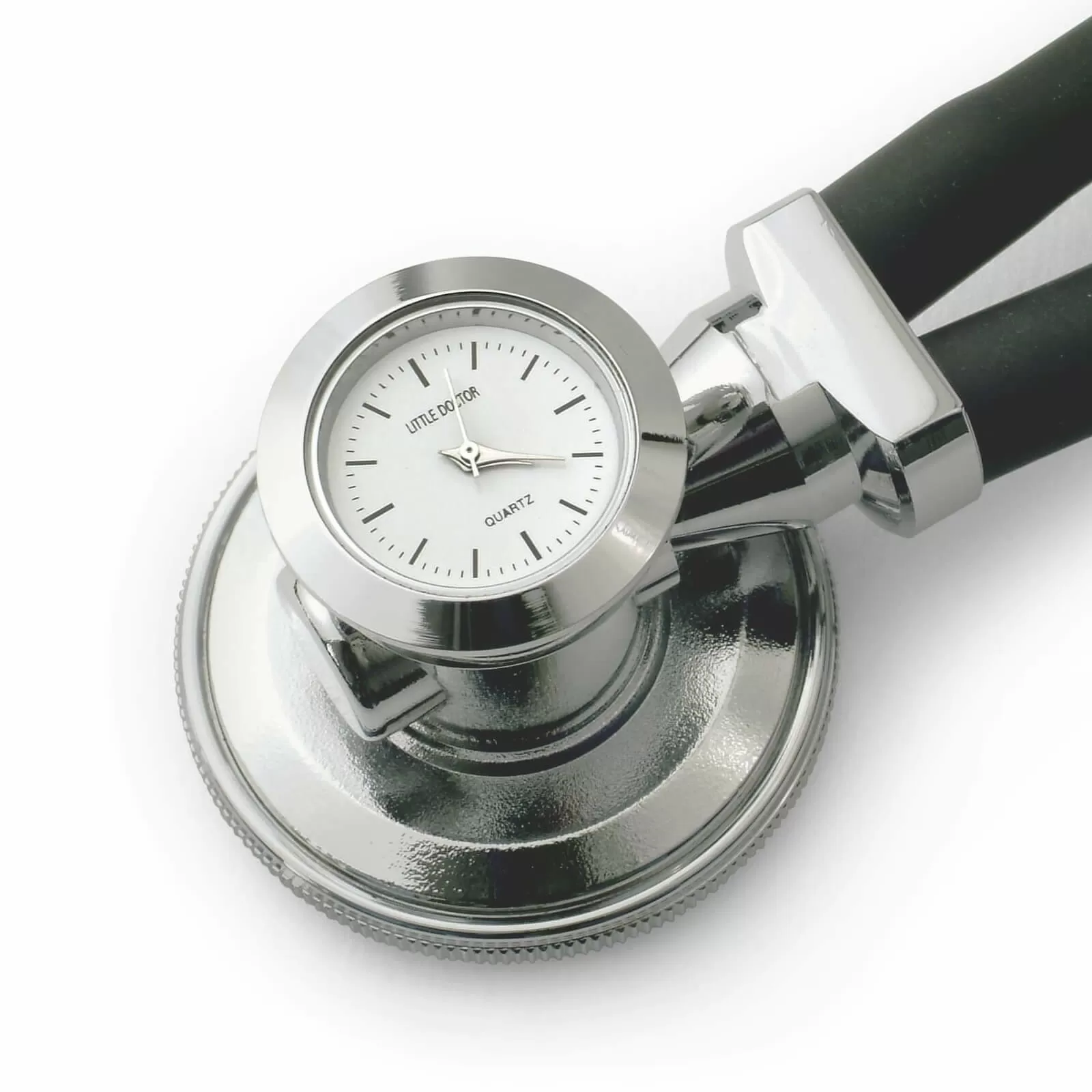 | Комплектность | двусторонняя металлическая головка с большой диафрагмой и встроенными кварцевыми часами, две утолщенные звукопроводящие трубки длиной 56, бинауральные металлические трубки с пружиной и наконечниками для ушей, пластиковый колокол большой (диаметр 33 мм), пластиковый колокол малый (диаметр 26 мм), пластиковый колокол неонатальный (диаметр 19 мм), мембрана большая (диаметр 38 мм), диафрагма малая, мембрана малая (диаметр 25 мм), пластиковые наконечники для ушей (твердые и мягкие), пластиковая сумочка для дополнительных принадлежностей |