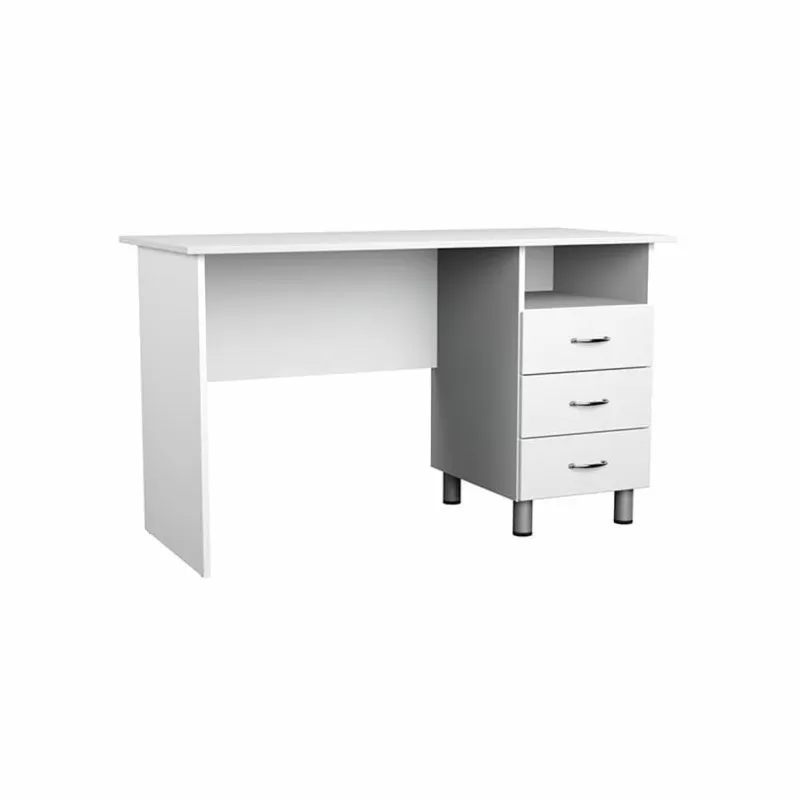 - Стол имеет одну тумбу с нишей с нагрузкой до 15 кг и 3-мя выдвижными ящиками на роликовых направляющих с нагрузкой до 5 кг
