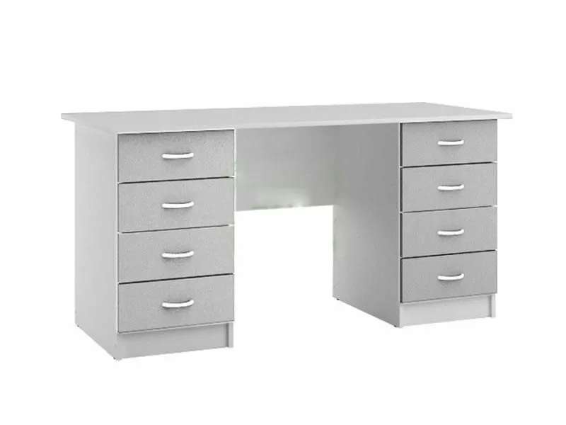 - Стол имеет две тумбы: обе тумбы представляют четыре отделения, образованных боковыми стенками и ящиками