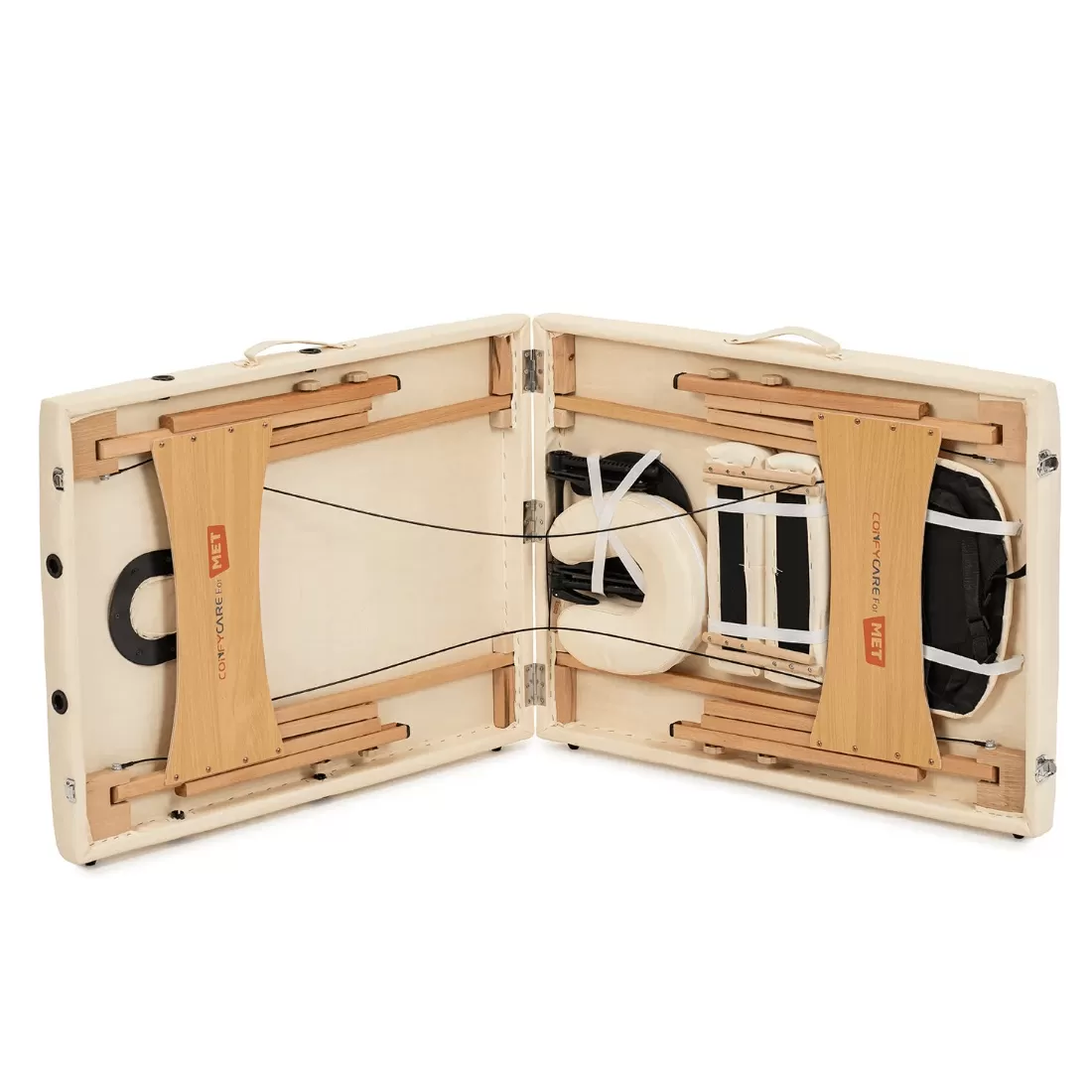 - Деревянный складной каркас из бука, позволяющий использование стола в качестве кушетки для физио-процедур.