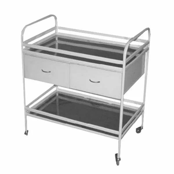 - Каркас столика, 2 выдвижных ящика, бортики ― сварная конструкция из стальной трубы и стального листа с полимерно-порошковым покрытием, 2 полки ― нержавеющий стальной лист 0,8 мм
