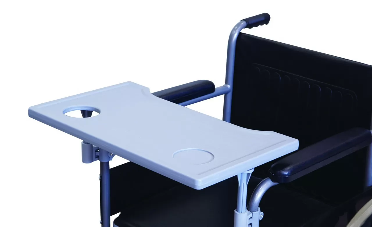 Съемный столик для инвалидных колясок предназначен для облегчения  приема пищи больных и инвалидов с частичной утратой функций  опорно-двигательного аппарата.