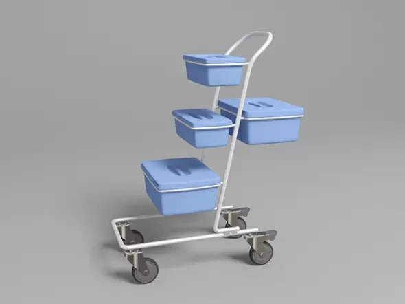 Тележка предназначена для компактного размещения комплекта контейнеров КДС-«Кронт» в местах использования ― небольшие операционные, перевязочные, процедурные кабинеты.