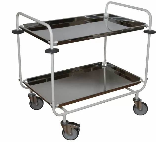 Тележка для доставки в палату пищи и сбора грязной посуды ТПП-1предназначена для подачи пищи для лежачих пациентов в лечебных учреждениях.