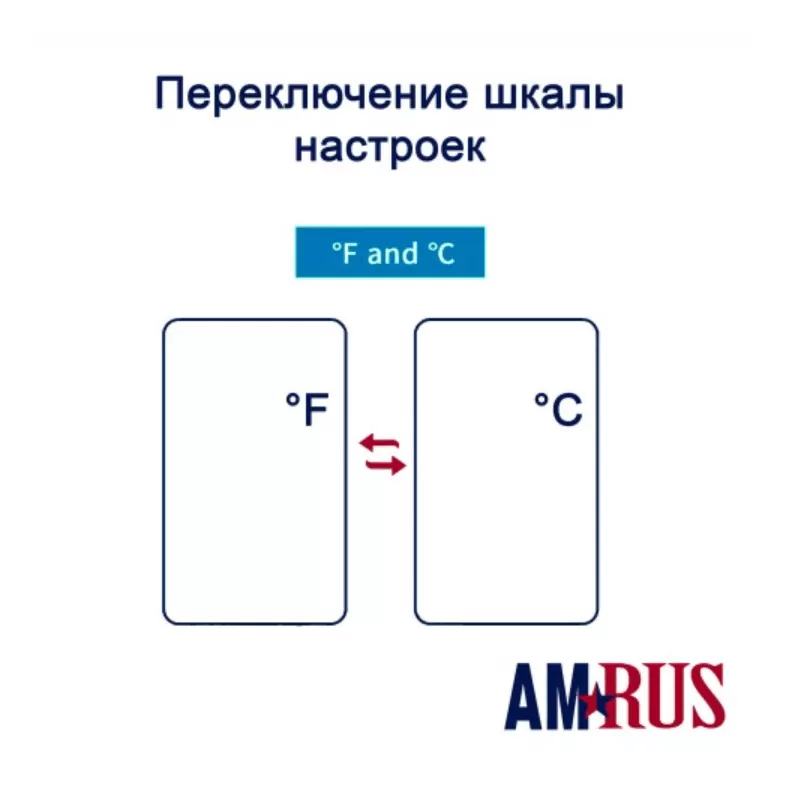 Инфракрасный медицинский термометр AMRUS AMIT-140 предназначен для измерения температуры тела человека (на лбу) и температуры объекта бесконтактным способом. Время измерения – 1-2 сек. Прибор имеет крупный ЖК дисплей с цветовой индикацией, звуковую сигнализацию и память на 50 измерений. В комплект входят 2 элемента питания ААА. Термометр имеет индикацию разряда питания и автоматическое отключение.Прибор меняет цветовую индикацию в зависимости от температуры: