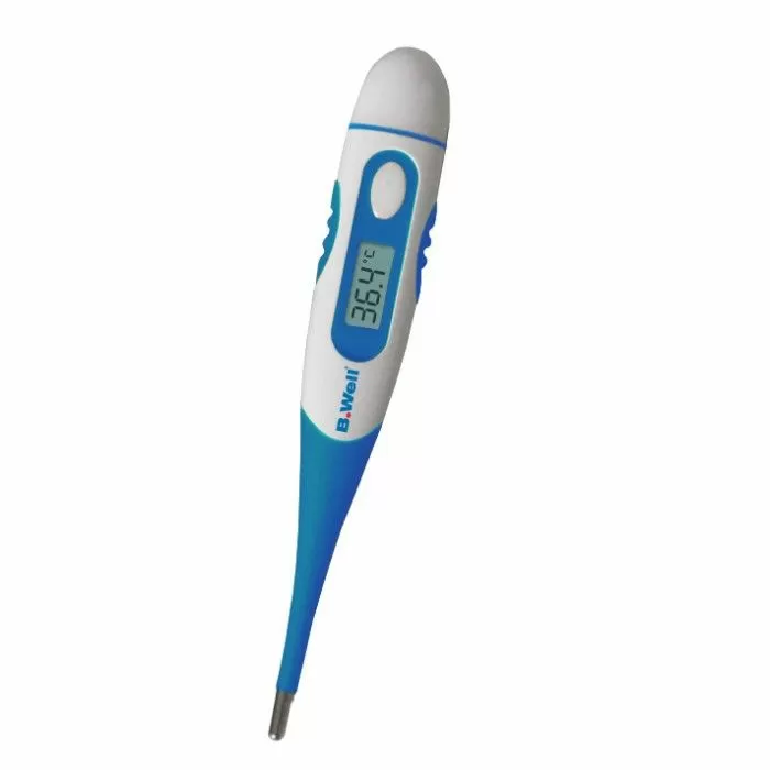 - B.Well WT-04 ― простой и доступный электронный термометр с гибким наконечником. Этот прибор не содержит ртути и стекла, что делает его максимально безопасным для всех членов семьи.